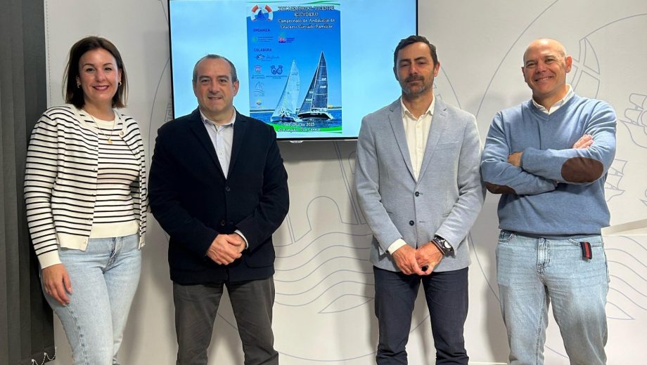 El diputado de Deportes, Juan Daniel Romero; la primera teniente de alcalde de Cartaya, Eva Moya, así como Francisco Pérez e Isaac Quiles, del Club Náutico Río Piedras, han presentado esta mañana, en la Diputación de Huelva, este ‘Memorial Vicente Escudero’, con el que se abrirá el calendario de regatas de verano de la provincia de Huelva.